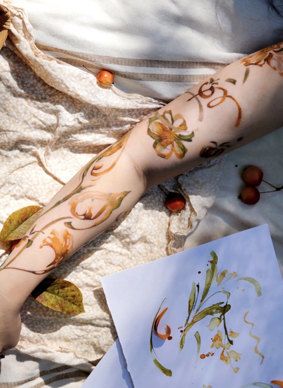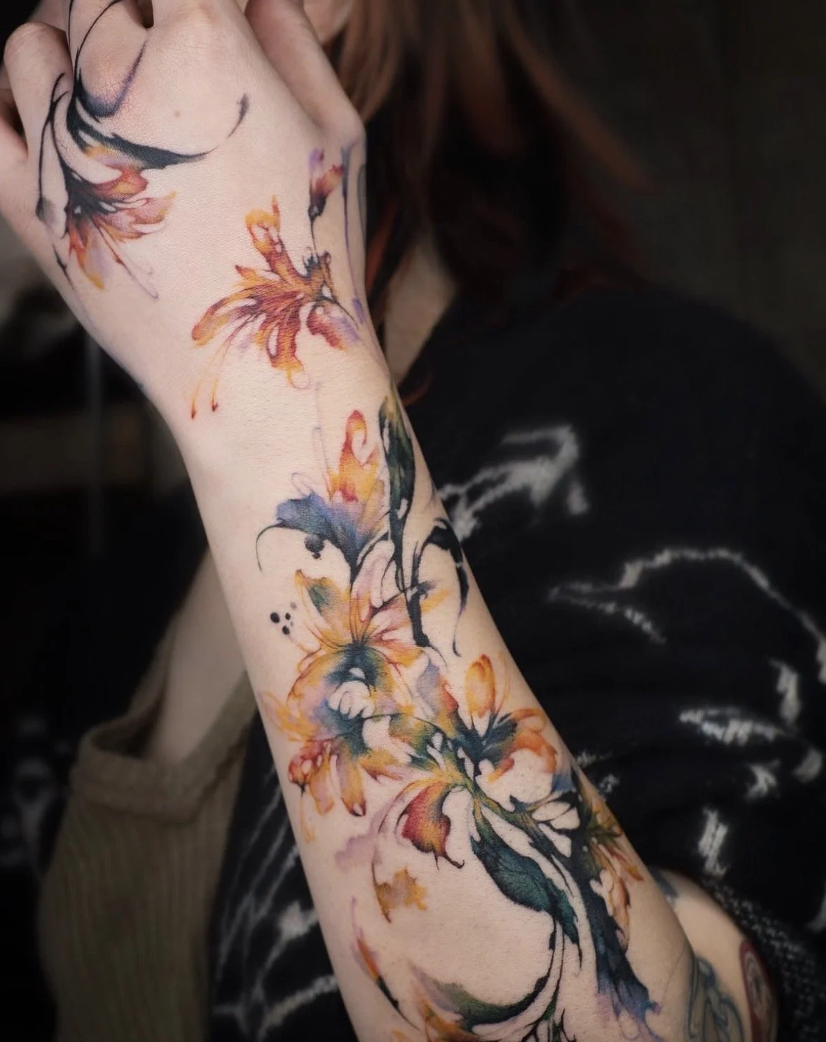If you like any of Narak's flash work or previous pieces, she can create a new, unique design in a similar style while incorporating your input into the tattoo.